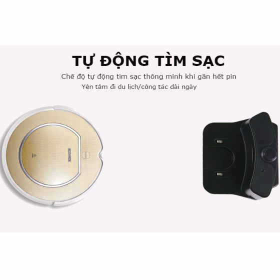 • Khả năng leo 1,5cm. Tự động quay về sạc khi gần hết pin